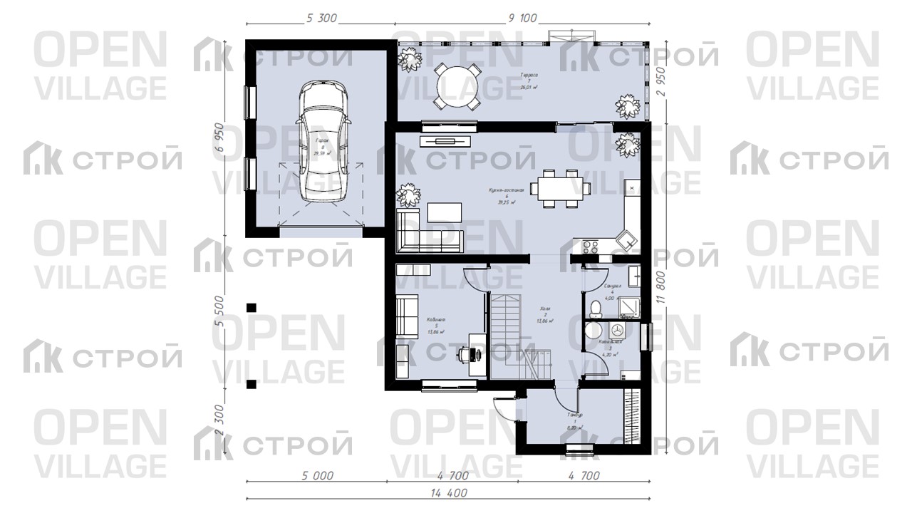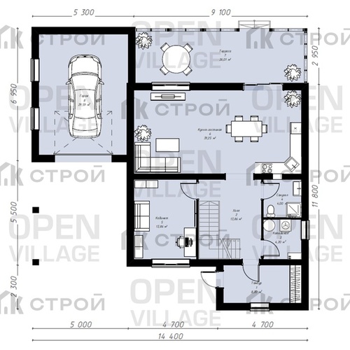 На первом этаже расположена просторная кухня-гостиная, которая является центром дома и идеальным местом для семейных посиделок и ужинов. Кухня-гостиная имеет выход на веранду, где можно насладиться свежим воздухом и прекрасным видом на окружающую местность.