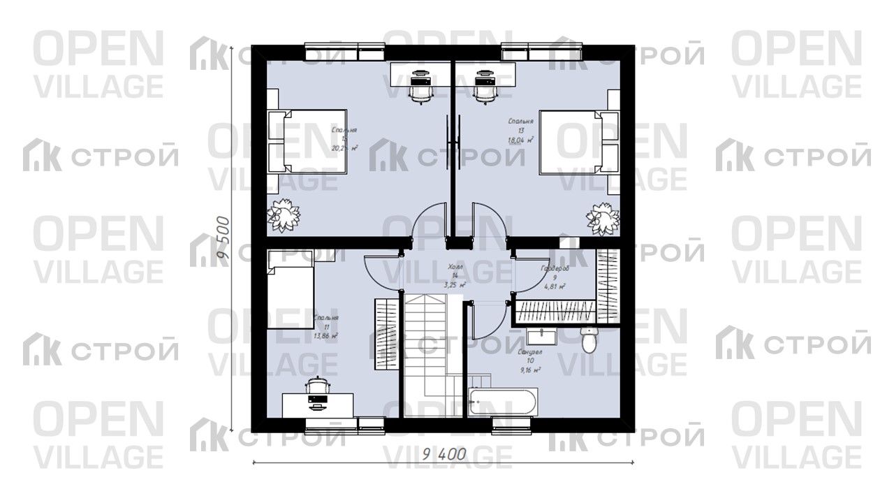 На втором этаже расположены еще три комнаты, которые могут быть использованы как спальни, детские комнаты или рабочие кабинеты. Имеется санузел и гардеробная для удобства жильцов этажа.