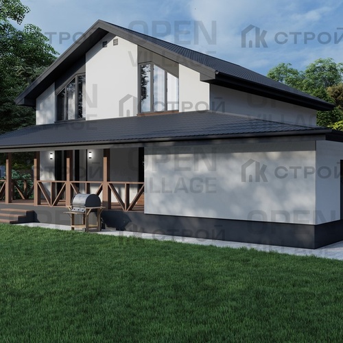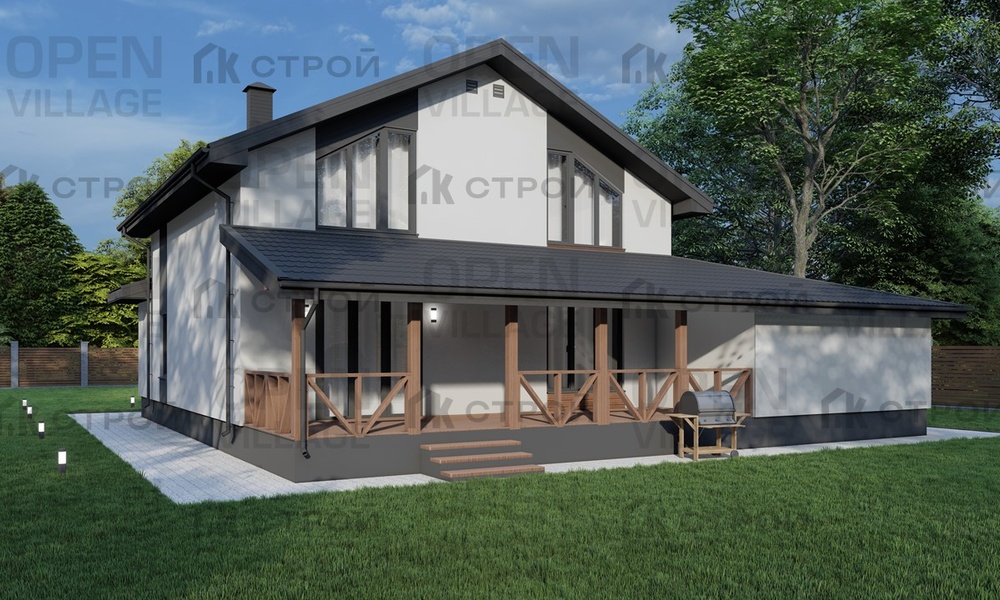 Двухэтажный дом площадью 176 квадратных метров, из газосиликатного блока.