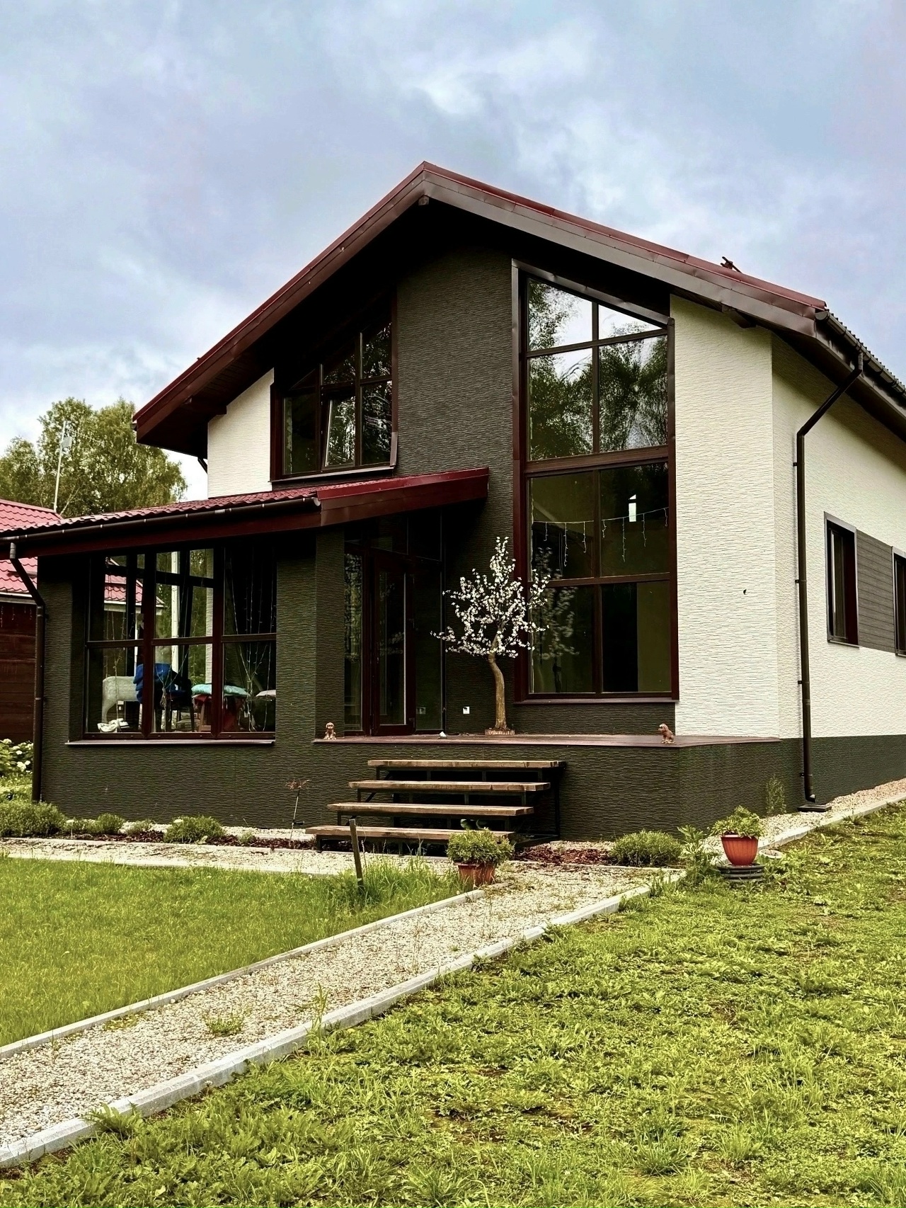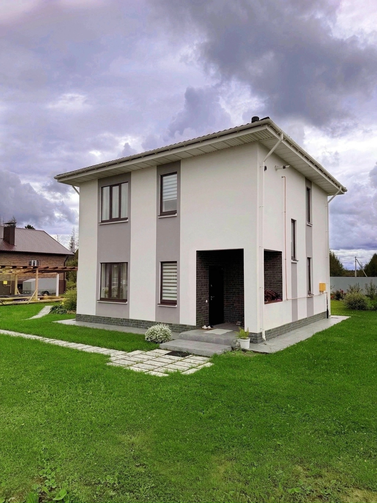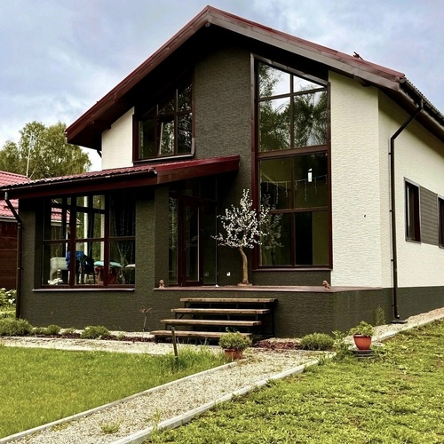 Индивидуальный жилой дом площадью 450 м2 построен в 2018 году "под ключ" Выполнены работы по проектированию, строительству, смонтированы инженерные коммуникации, выполнена чистовая отделка, обустройство территории. Материал стен - арболитовые блоки.