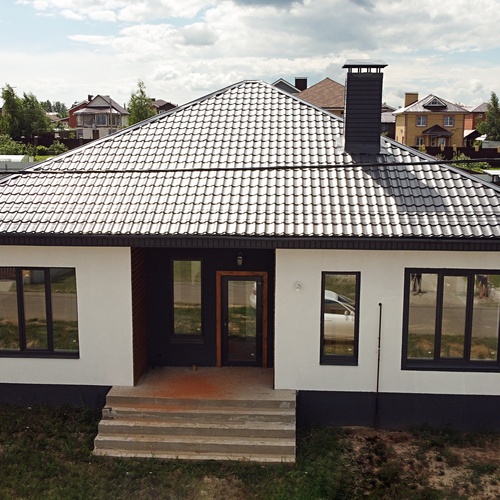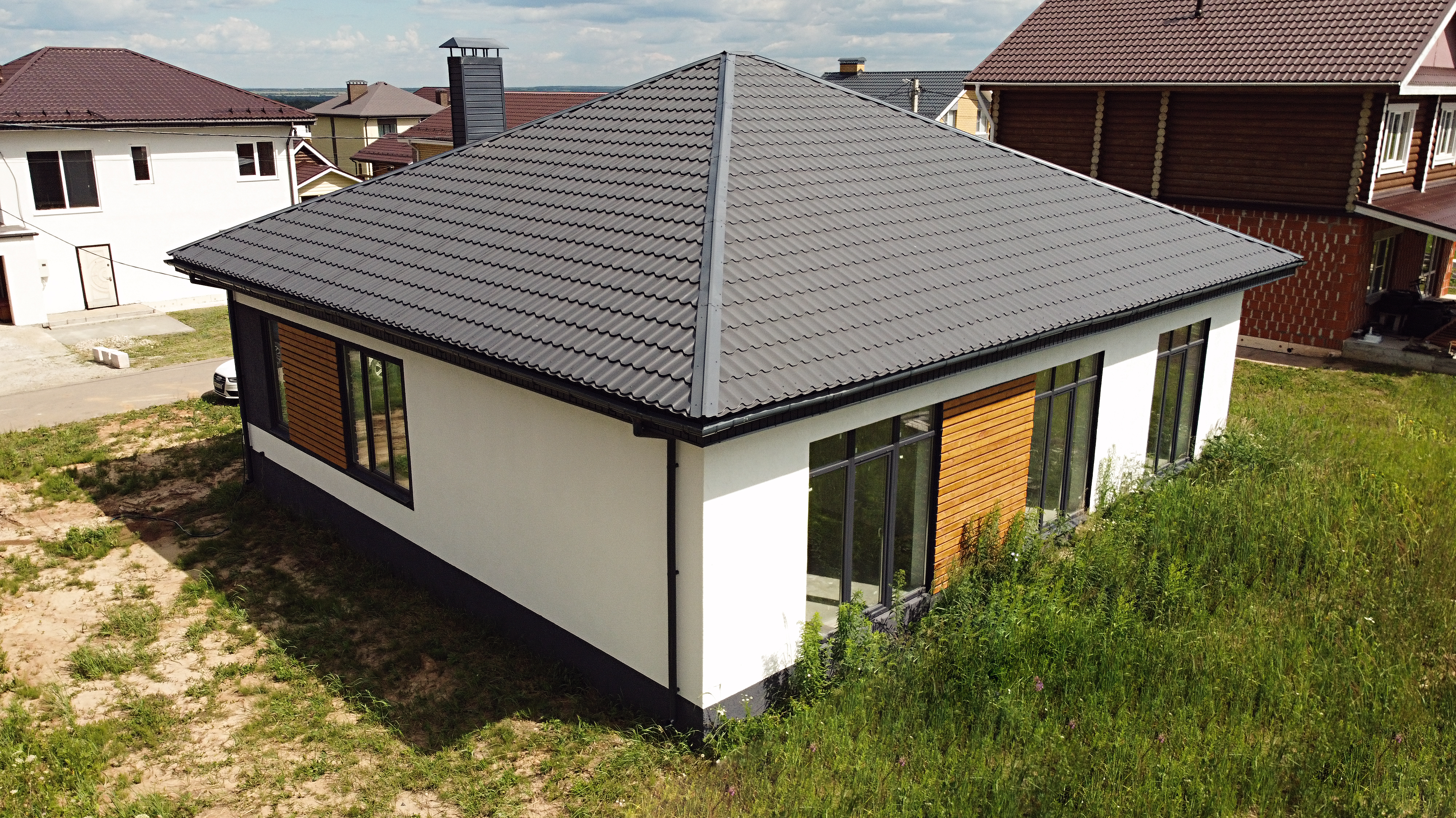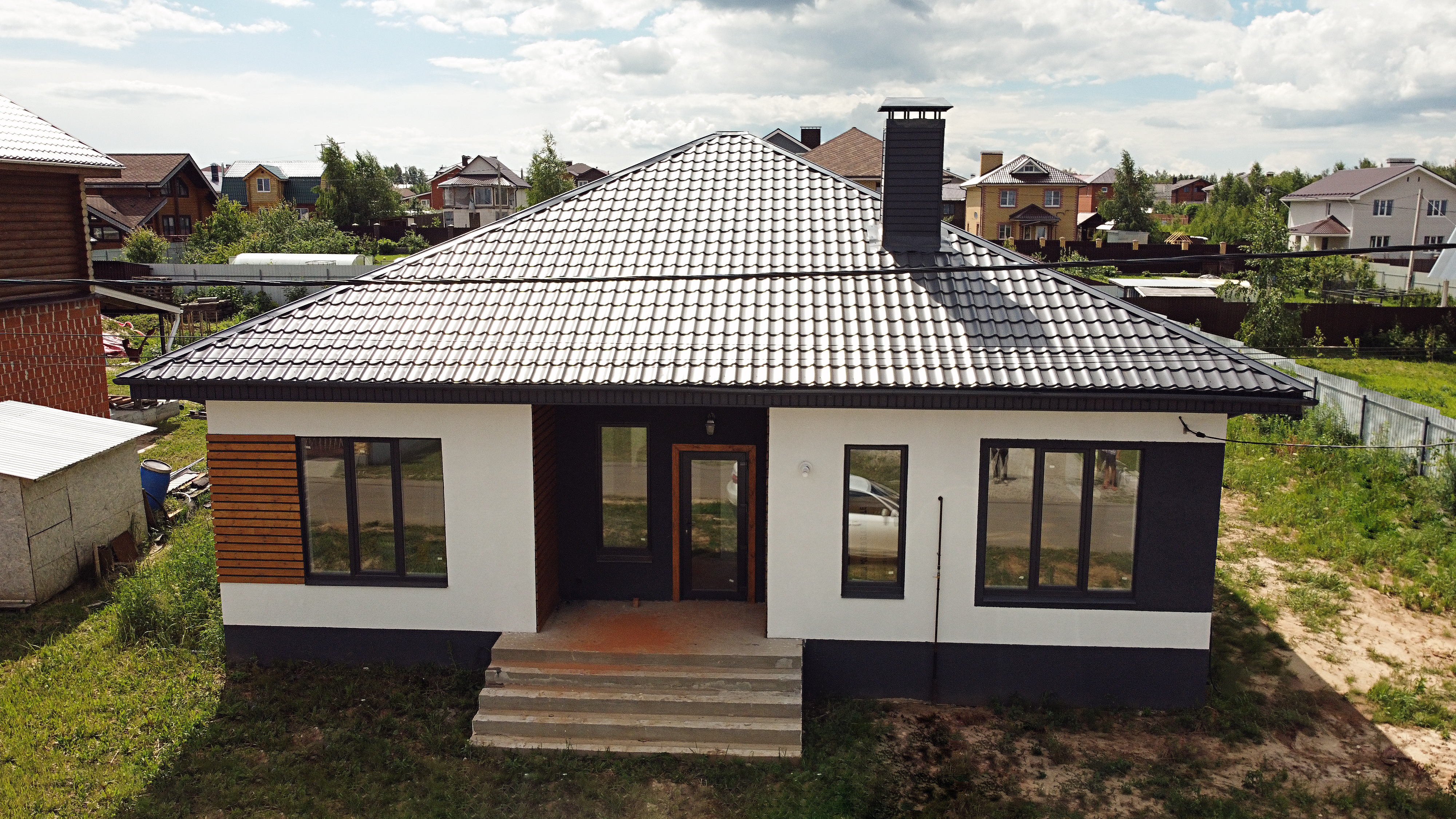 Одноэтажный жилой дом, общей площадью 130 кв м. В доме имеются 3 спальни, кухня-гостинная, сан узел, гардеробная и терасса. Помещения в доме расположены так, чтобы каждый метр был задействован с пользой.