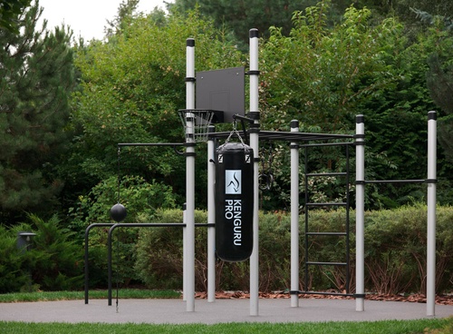 KENGURU PRO реализуют более десяти вариаций воркаут–комплексов с разной комплектацией. Количество и состав оборудования (турники, брусья, классический рукоход, шведская стенка, гимнастические кольца, баскетбольный щит, боксерская груша, канатный комплекс) подбираются под конкретный запрос клиента.