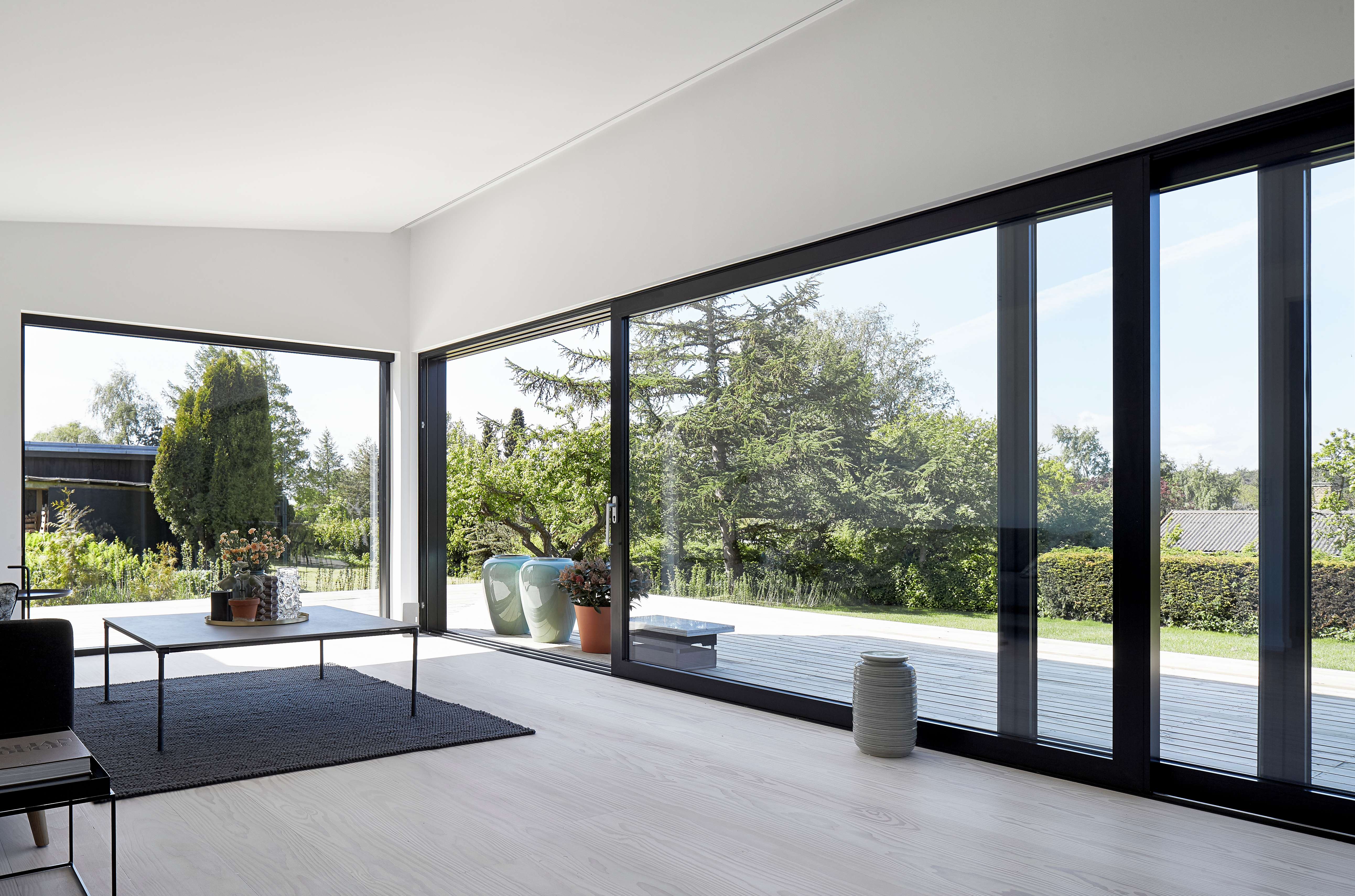Раздвижные трёхполозные двери с максимальной панорамностью.