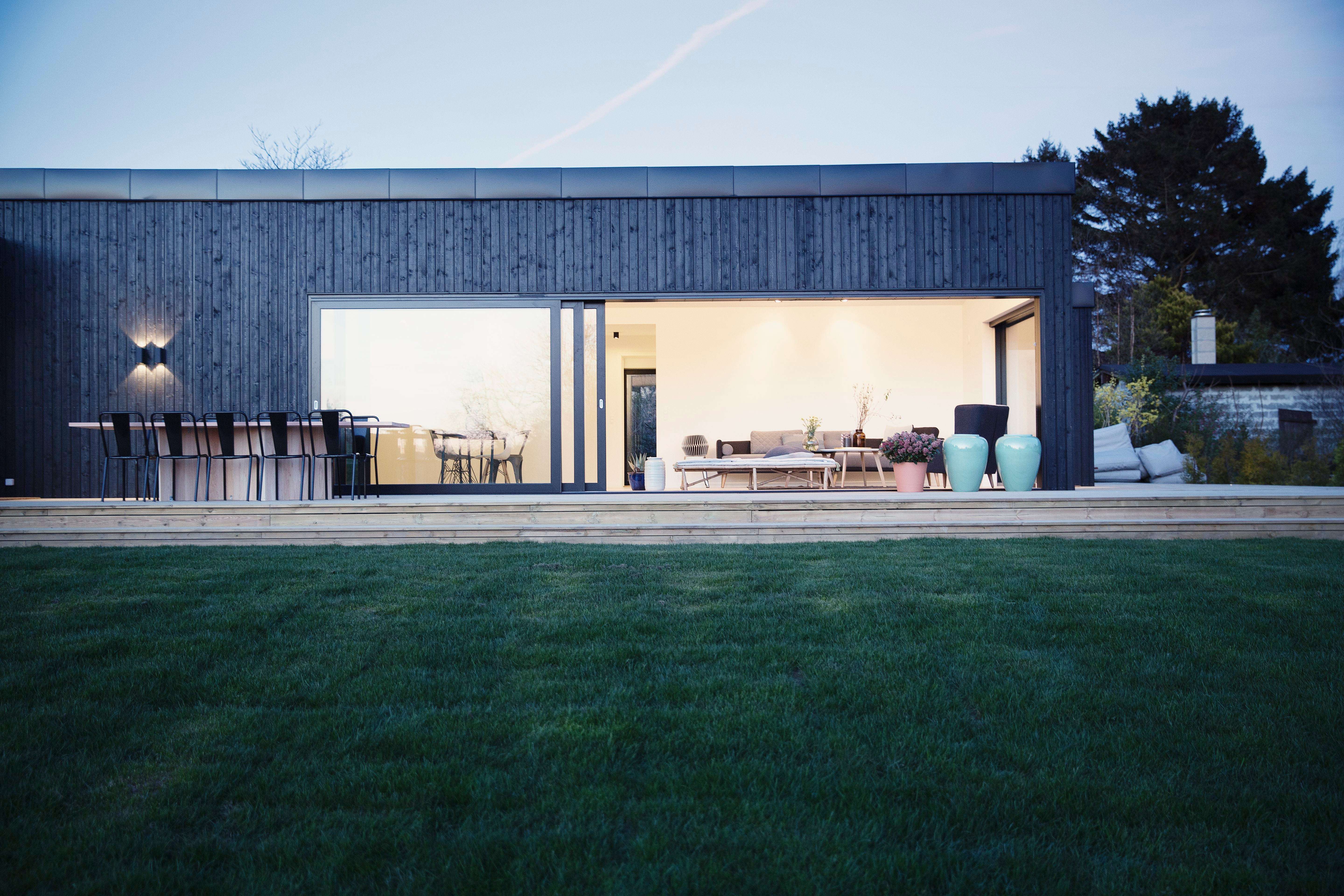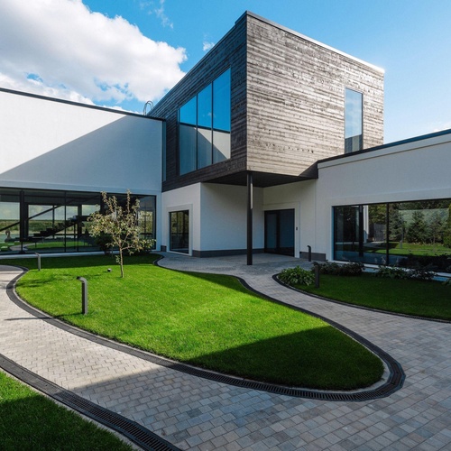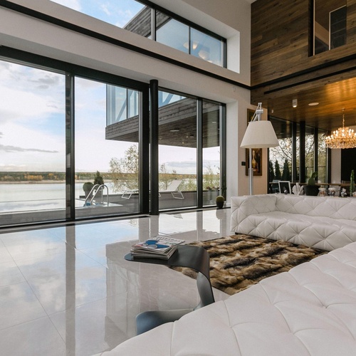 Реализация выхода на террасу из гостиной частного дома с безбарьерным проходом (нулевым порогом) - одно из трендовых решений в современном домостроении.