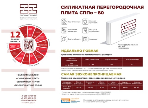 Компания «Силикат Групп» и Ковровский завод силикатного кирпича (КЗСК) запустили производство новой силикатной перегородочной плиты СППо-80 495х80х248 мм марки М-150/200 ГОСТ 379-2015