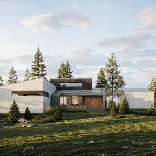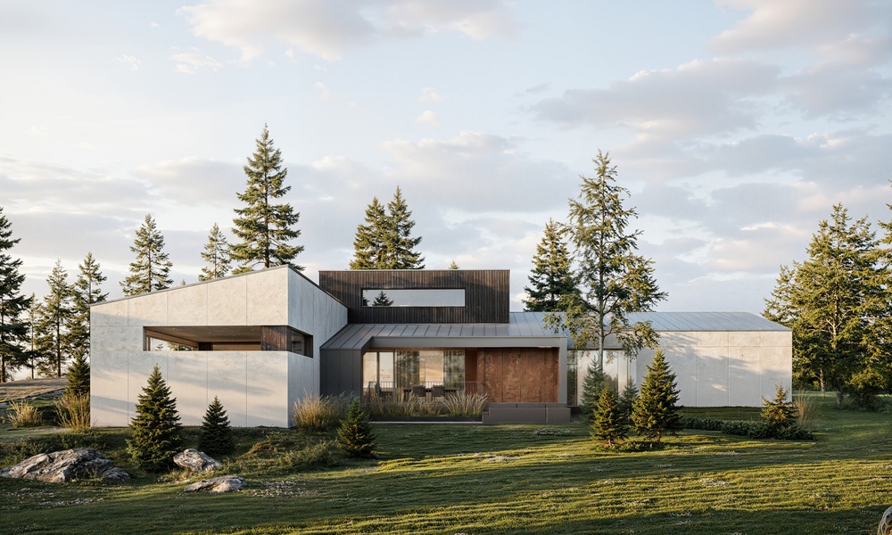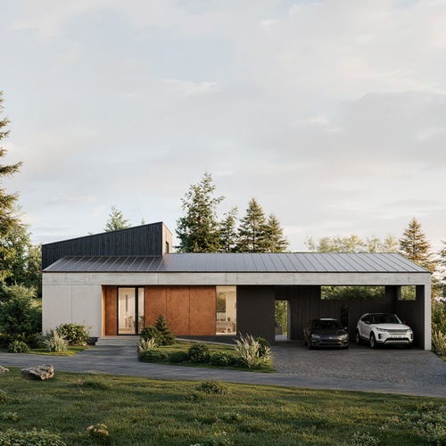 В центре дома создатели разместили главную зону для семьи — просторную кухню-гостиную с выходом на двухуровневую террасу. Для отдыха предусмотрена мастер-спальня с гардеробной и собственной ванной, а также две отдельные спальни.