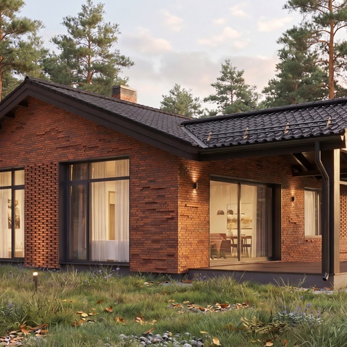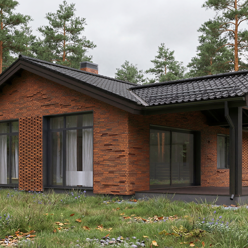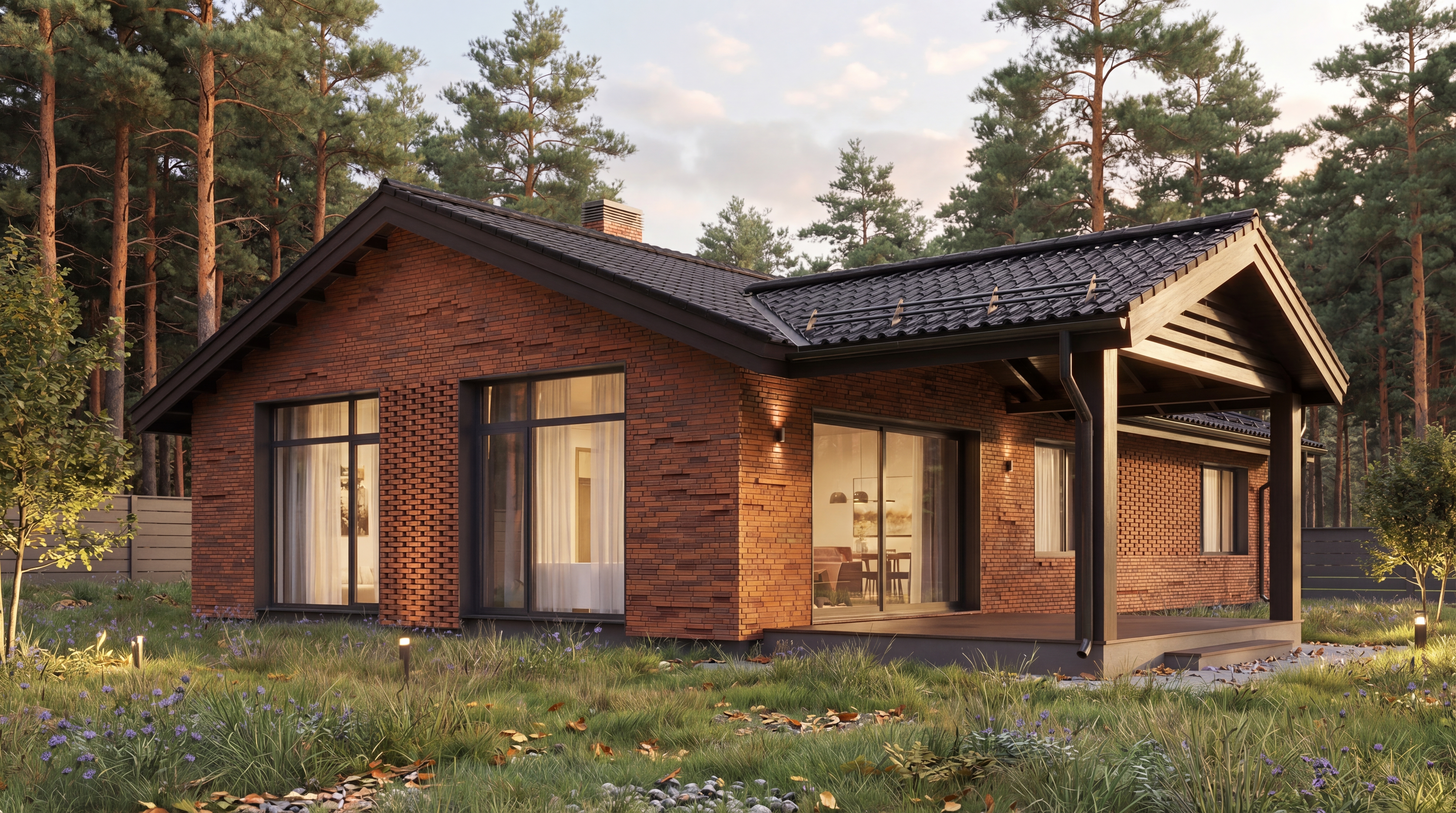Дом построен из керамических блоков Porotherm 38 Thermo — материала, который обеспечивает надёжность, энергоэффективность и комфортный микроклимат в доме.