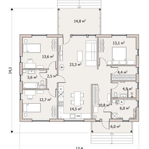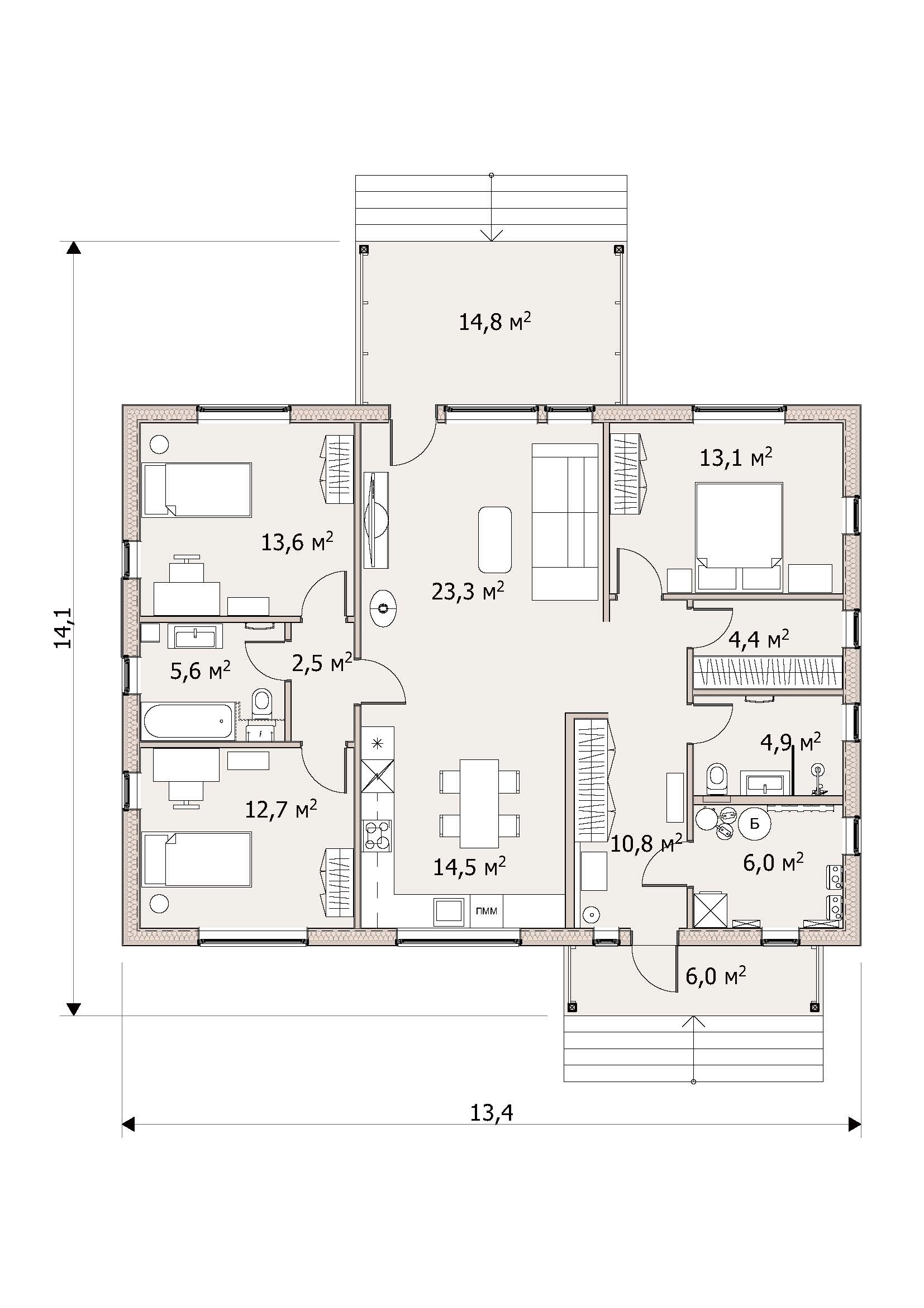 — Спальни логично разведены по сторонам, чтобы обеспечить комфорт и приватность для каждого члена семьи.