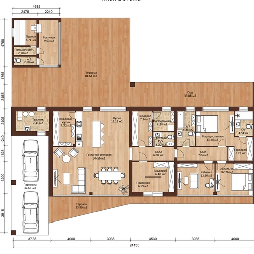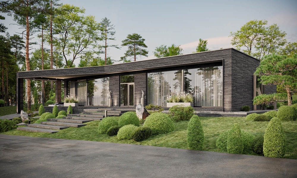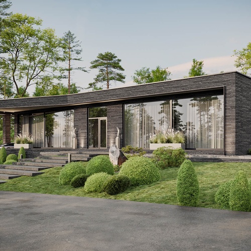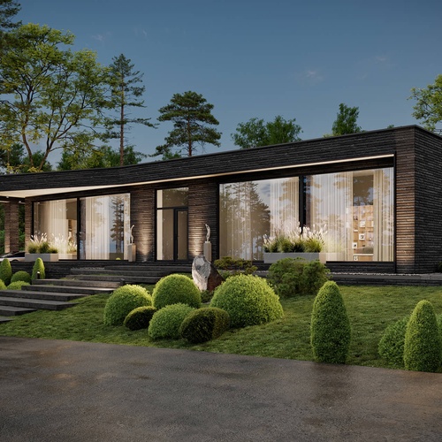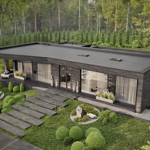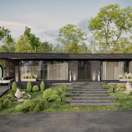 Просторные помещения с панорамным остеклением наполнены естественным светом, а продуманная планировка делает дом удобным для жизни. Использование экологичных материалов обеспечивает здоровый микроклимат.