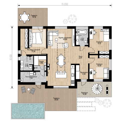 | Терраса | 32,75 м2 |