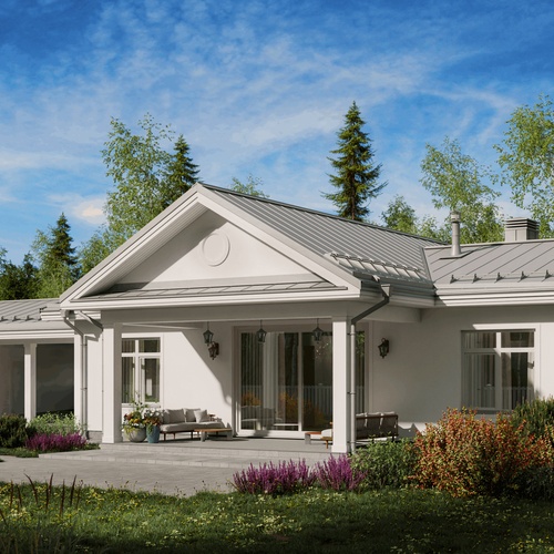 Усадьба «Белая Дача» — просторное одноэтажное домовладение в современном классическом стиле.