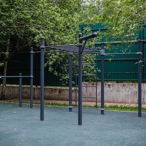 На площадке у клиента уже было подготовлено бетонное основание толщиной 300 мм. На таком толстом основании бетонировать столбы было бы нецелесообразным. Мы предложили оборудование для воркаута на фланцах.