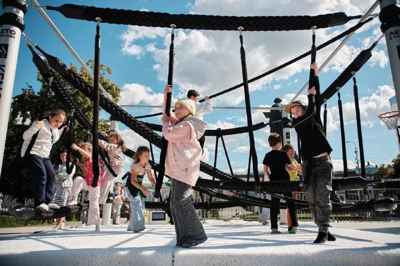 Архитектурный объект, который меняет представление об игре и городской среде. Компания пригласила детей разного возраста, предоставила макет, канаты, крепления и предложила поиграть в создание площадки.